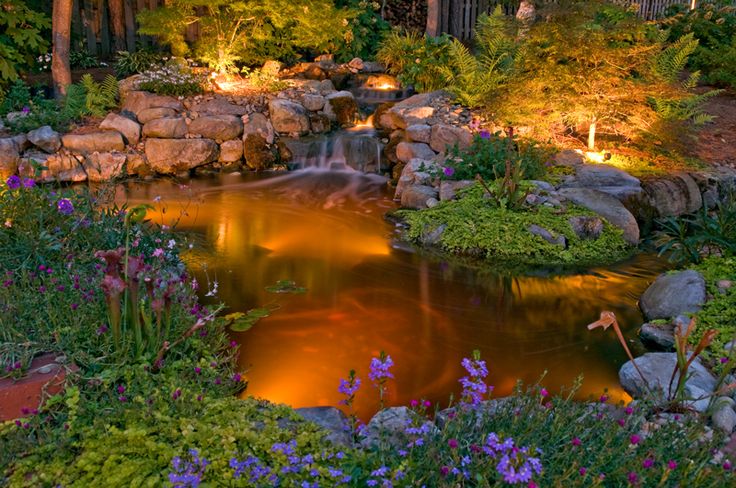 La iluminación nocturna puede transformar por completo la apariencia de tu estanque después del anochecer. Utiliza luces subacuáticas para destacar características clave como cascadas, rocas decorativas y plantas acuáticas. La iluminación para caño de pared de OASE, por ejemplo, proporciona una iluminación suave y ambiental que resalta la estructura del estanque y crea un ambiente mágico en el jardín nocturno.